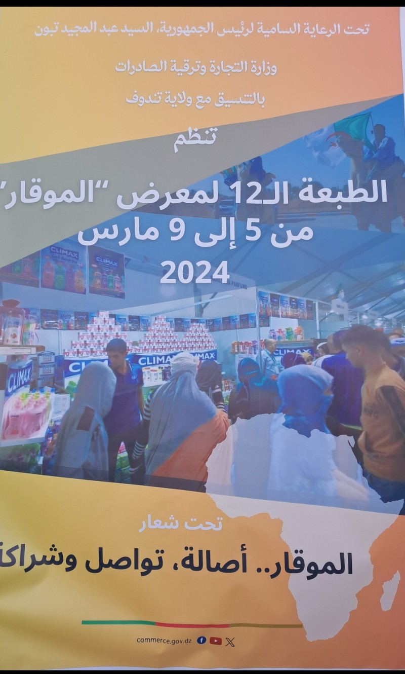 تشارك مؤسسة ميناء الغزوات في الطبعة الثانية عشر بالمعرض الدولي الموقار بتندوف من 05 إلى 09 مارس 2024 تحت شعار الموقار.. أصالة، تواصل وشراكة